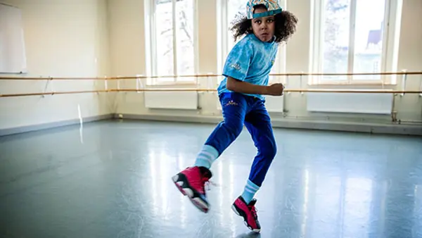 - Dansmoment som snurrar, hopp, rullningar och glidningar