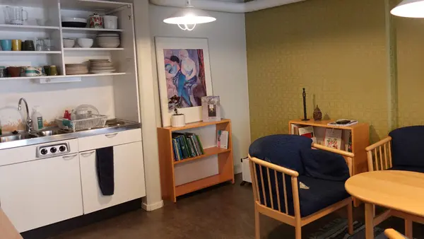 Fikarummet är utformat för att ge en avkopplande paus från ditt skapande. Här finns kyl, frys, micro, pentry med kokplatta, bord och stolar samt en kaffemaskin. Det är den perfekta platsen för att ta en paus, fylla på energin och kanske utbyta idéer med andra kreativa personer.