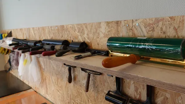 Staffli, grafikpressar, screentryck, knyppelbrädor och stickningsverktyg är exempel på redskap som finns på plats. Redskap och verktyg kommer löpande fyllas på vid intresse eller behov.