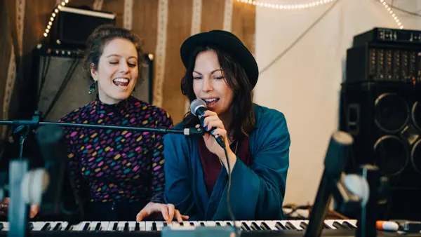 DUO-undervisning innebär att ni sjunger två stycken tillsammans med er sångpedagog. Tillsammans får ni vägledning och stöd av er sångcoach, samtidigt som ni tar inspiration och utvecklas av varandra.
