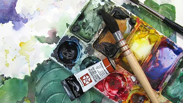 Tag med det akvarellmaterial som du eventuellt redan har till första tillfället: färger, penslar, akvarellpapper.