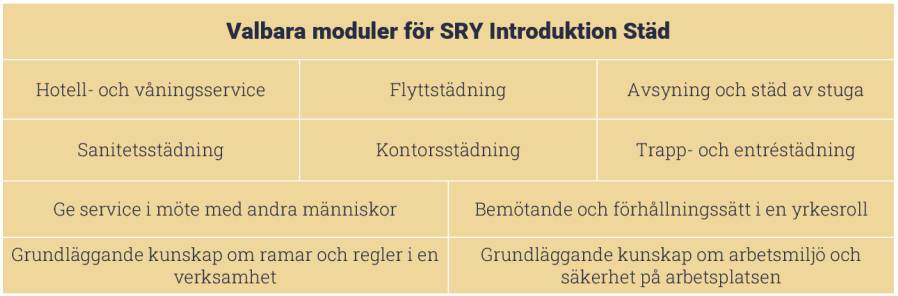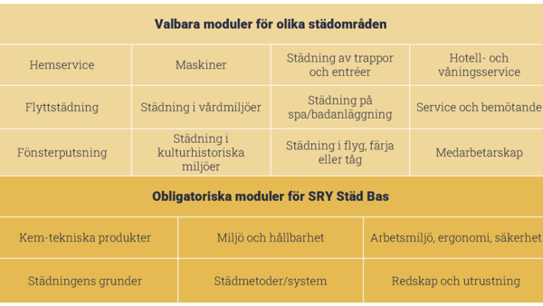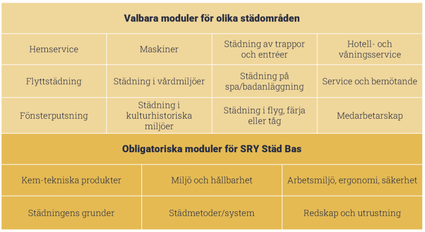Vill du arbeta professionellt inom städ- och servicebranschen eller utveckla din kompetens i yrket? Genom vår SRY-utbildning får du ta del av en kvalitetssäkrad modell som följer branschens krav och standarder.
