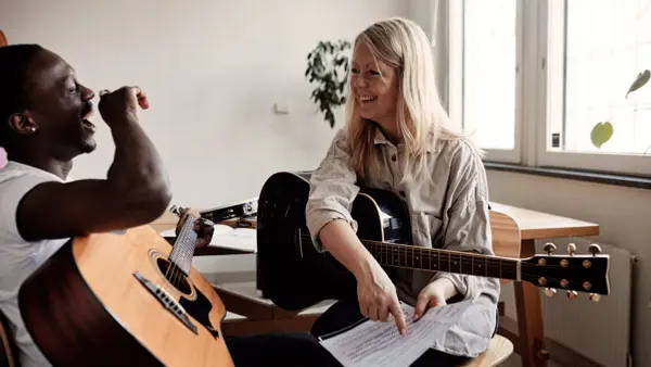 Lär dig spela akustisk gitarr i en nära och personlig undervisningsmiljö – perfekt för dig som vill ha extra stöd och inspiration!