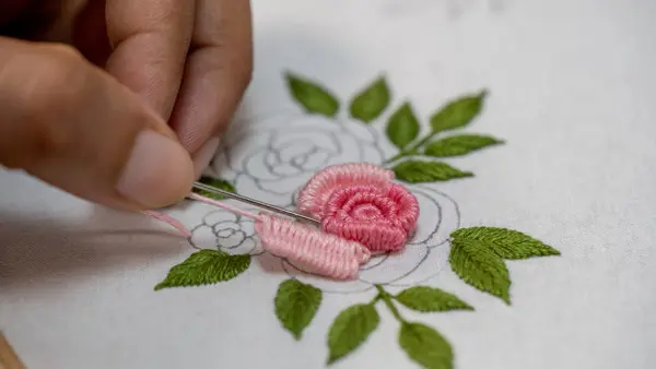 - grunderna i traditionellt broderi, såsom efterstygn, plattsöm, kedjestygn och franska knutar